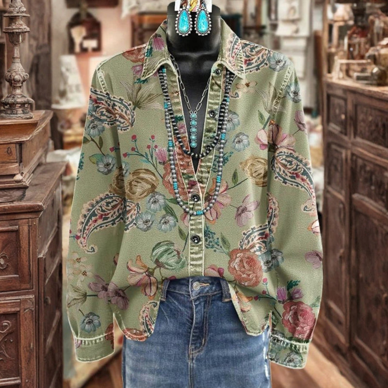 Vintage-Bluse Mit Blumendruck